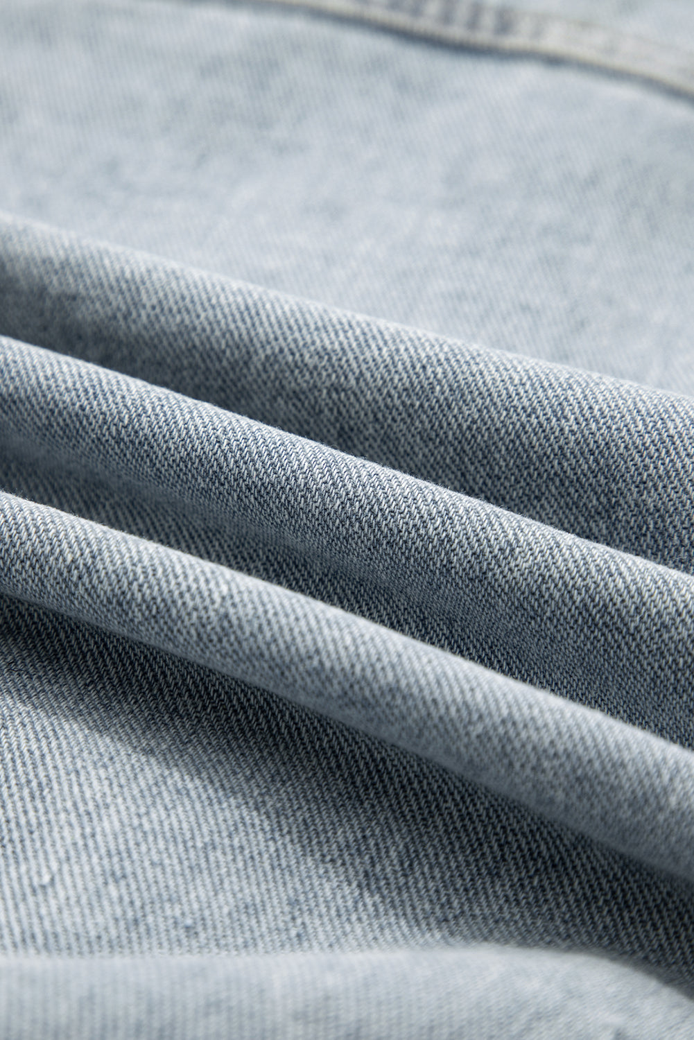 Beau Blue Street Style Zip Up Washed Denim Jacket