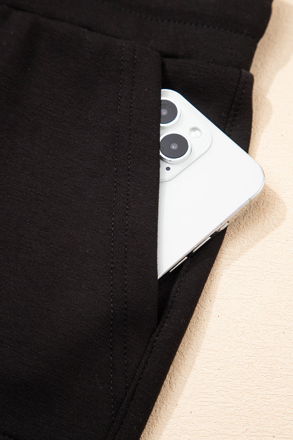 Black Exposed Seam Detail Skinny Drawstring Jogger Pants